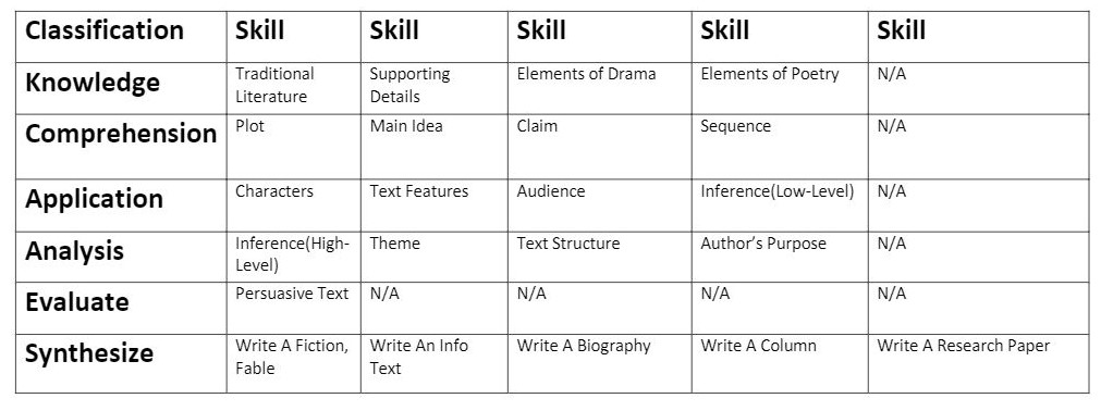 With the structure, the year start at the Knowledge portion of Bloom’s and progress them until they synthesize that skill. Following that week, you continue to build on those previously learned concepts.
